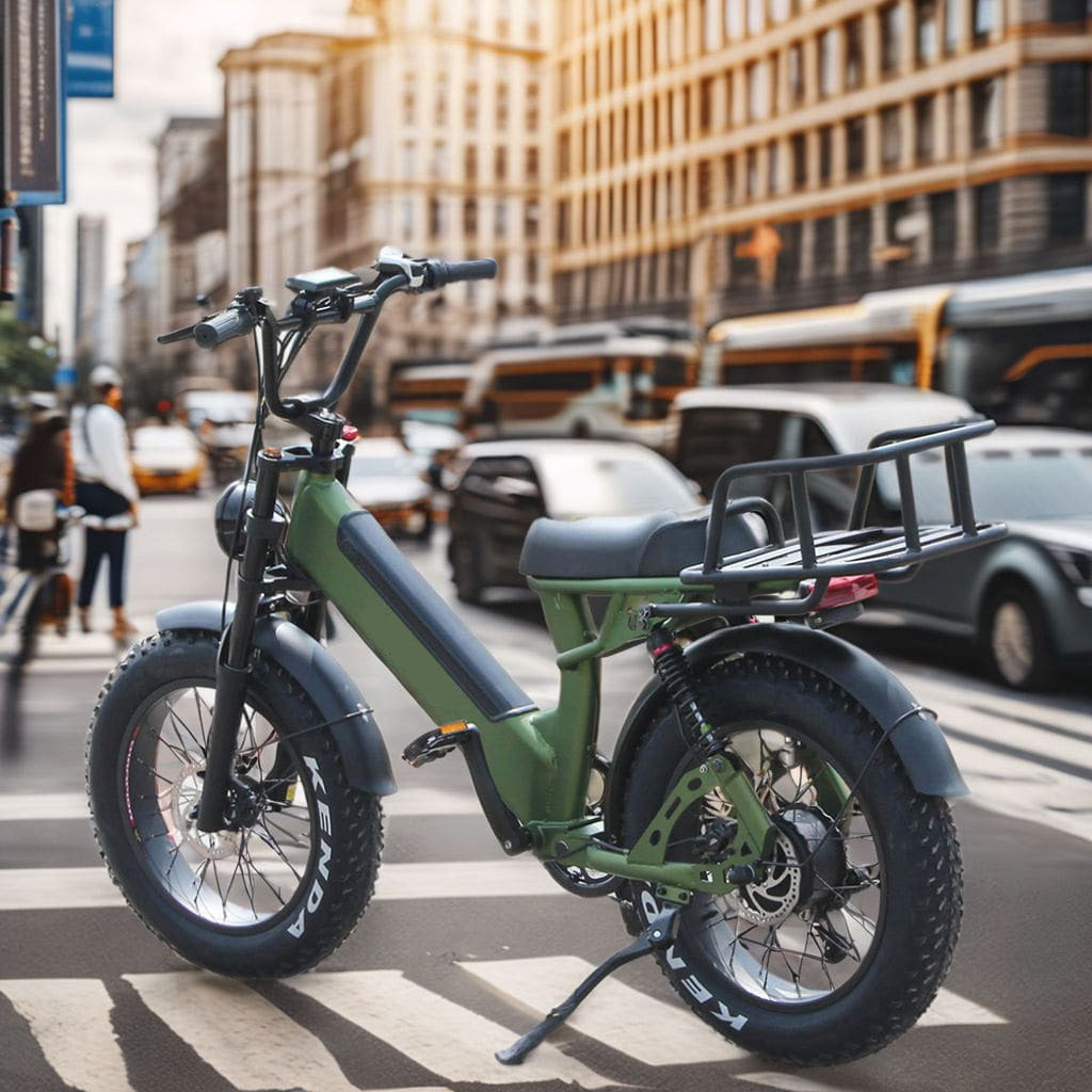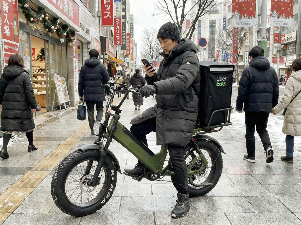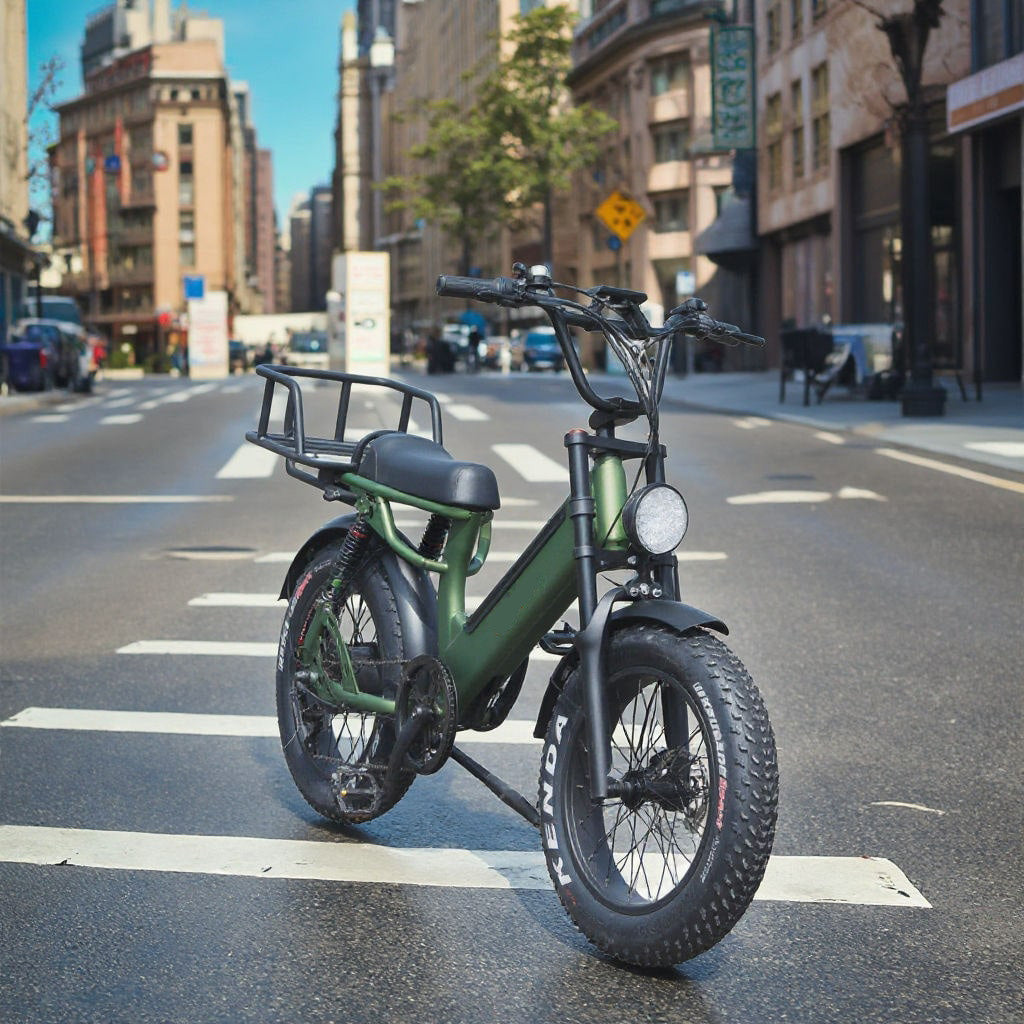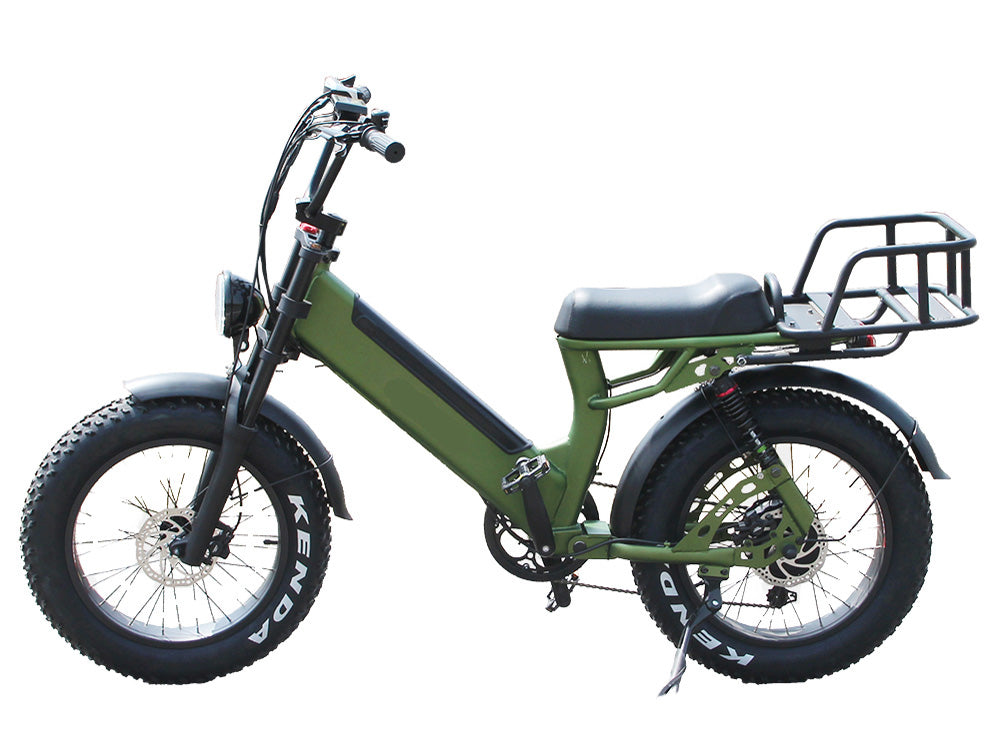 タイヤはタイヤ径20インチ、幅4インチの極太ブロックタイヤ。滑りにくくクッション性と安定性に優れているため、小石や溝、段差を気にすることなく、上り坂でもふらつかず、通常の自転車では走ることが困難な段差の乗り越えや山道、草原、砂浜、雪道などの悪路も走ることができます。