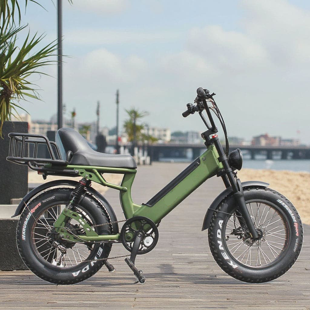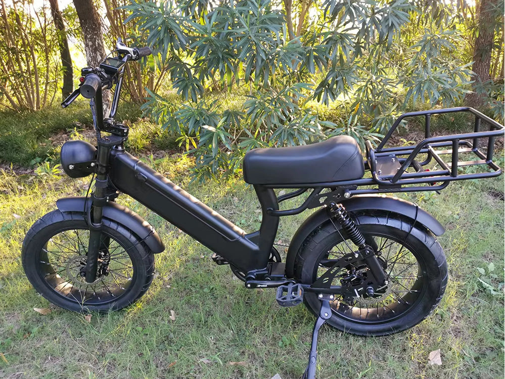 前輪のフロントフォークにはエアサスペンション、後輪にもダブルサスペンションを採用し、ともに地面からの衝撃を緩和し、段差やでこぼこ道でも快適なライディングが楽しめます。