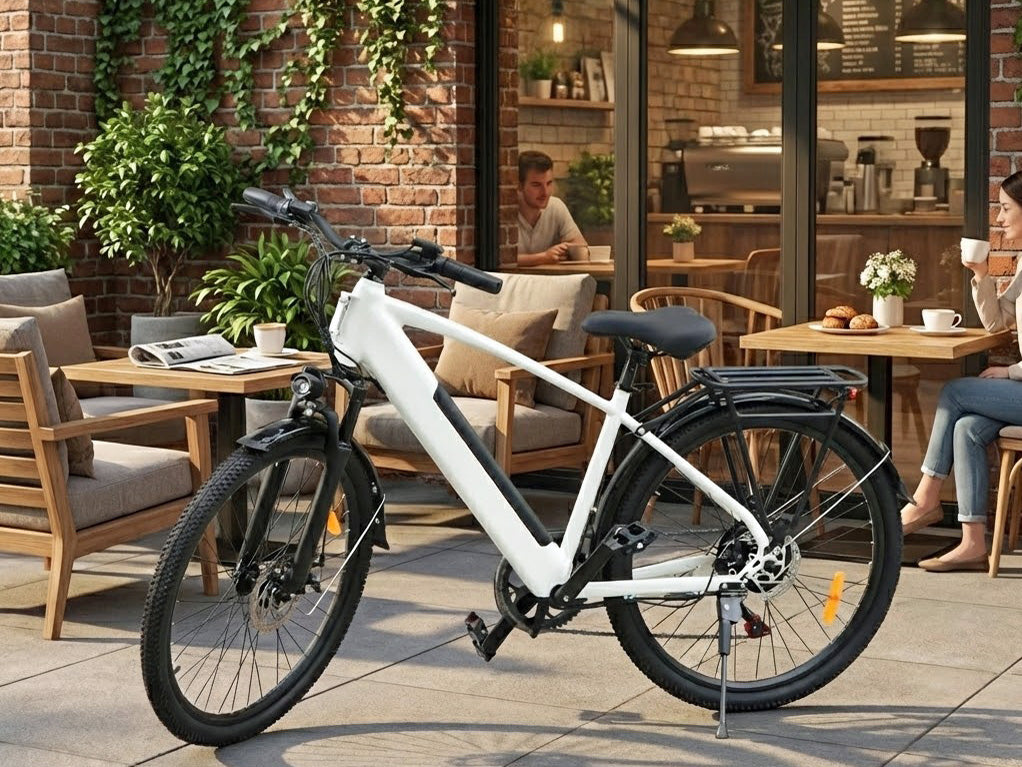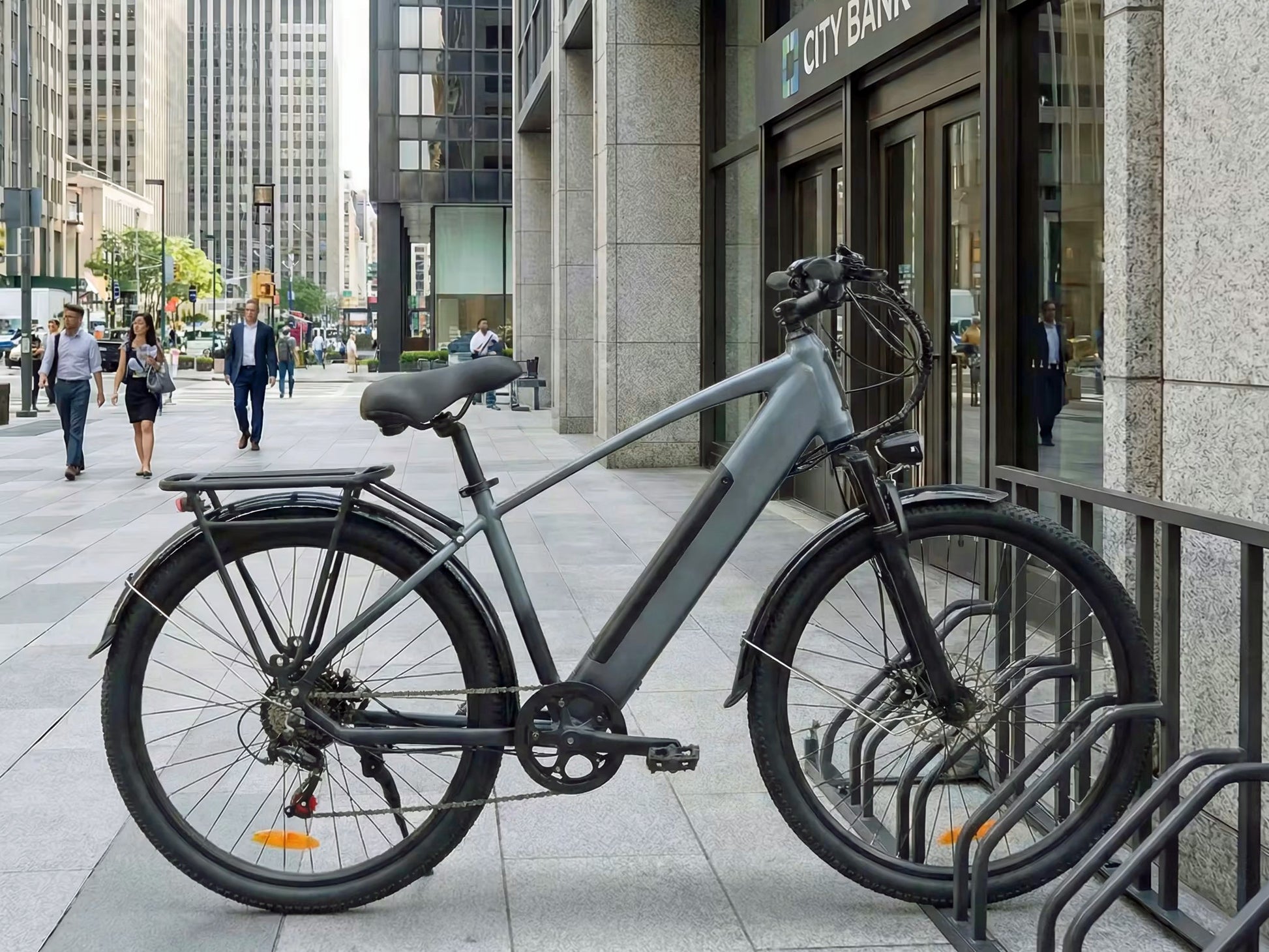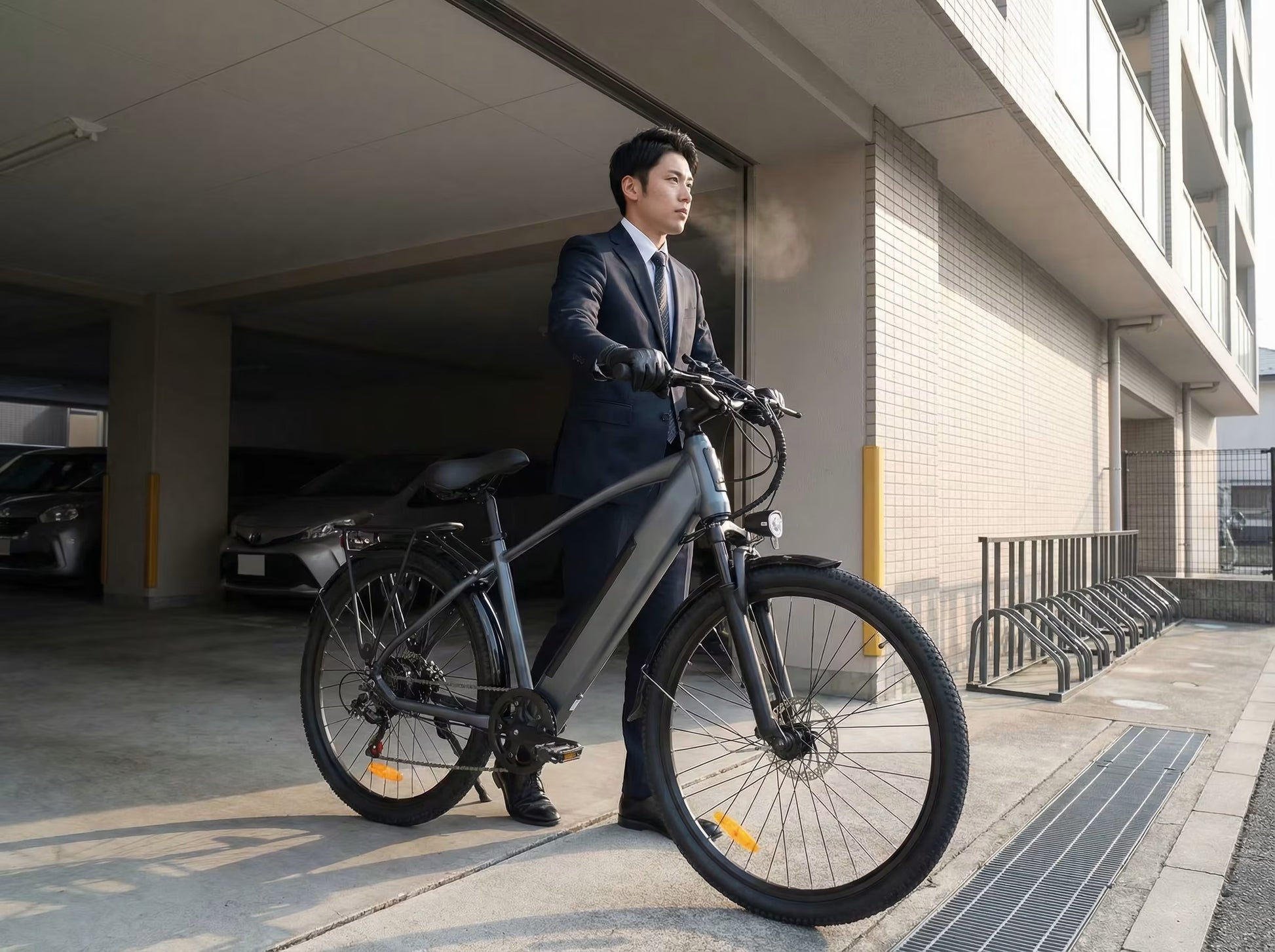 フロントとリアの両方に機械式ディスクブレーキを備えており、一般のVブレーキに比べて雨や悪路に強く、軽い力で強力な制動力を発揮します。