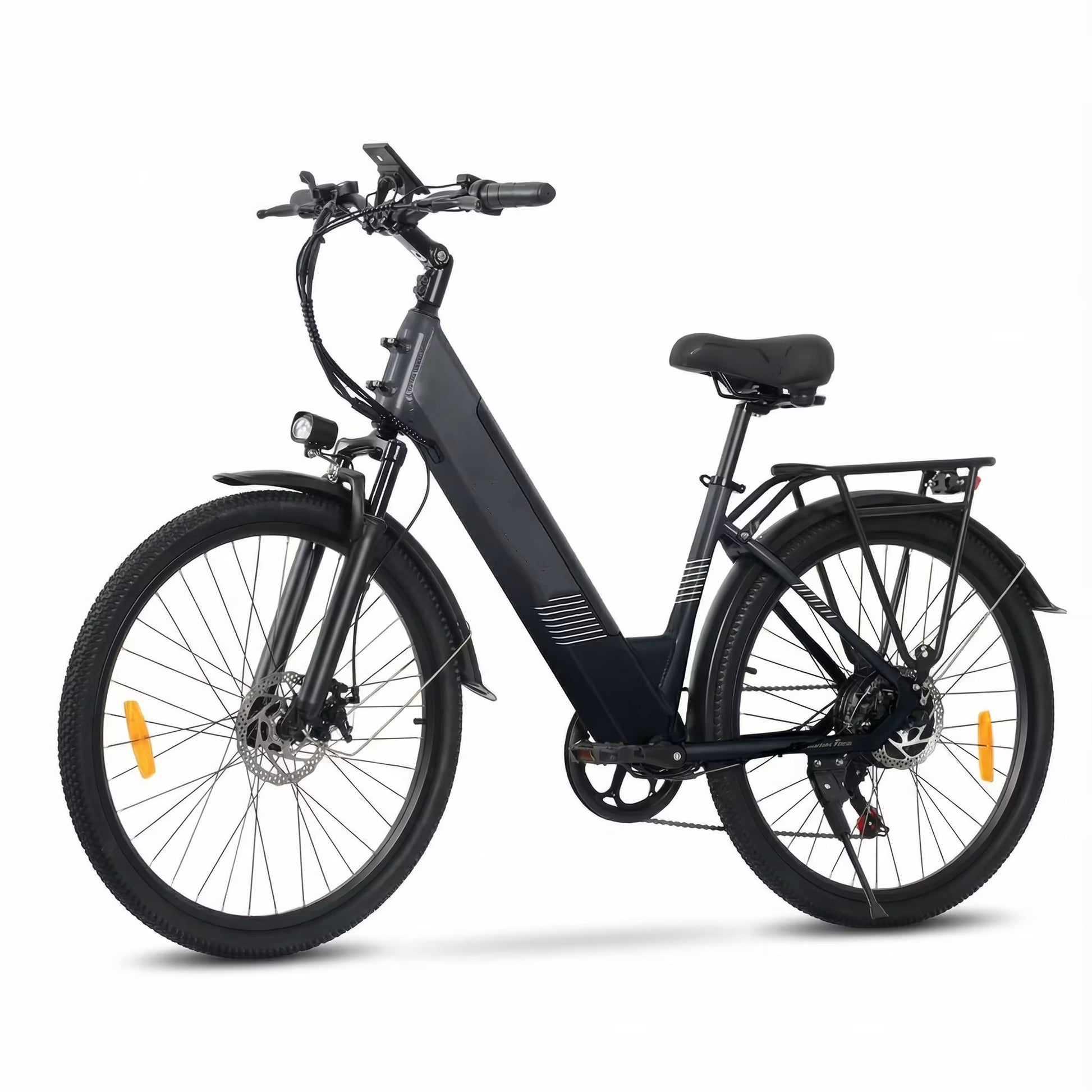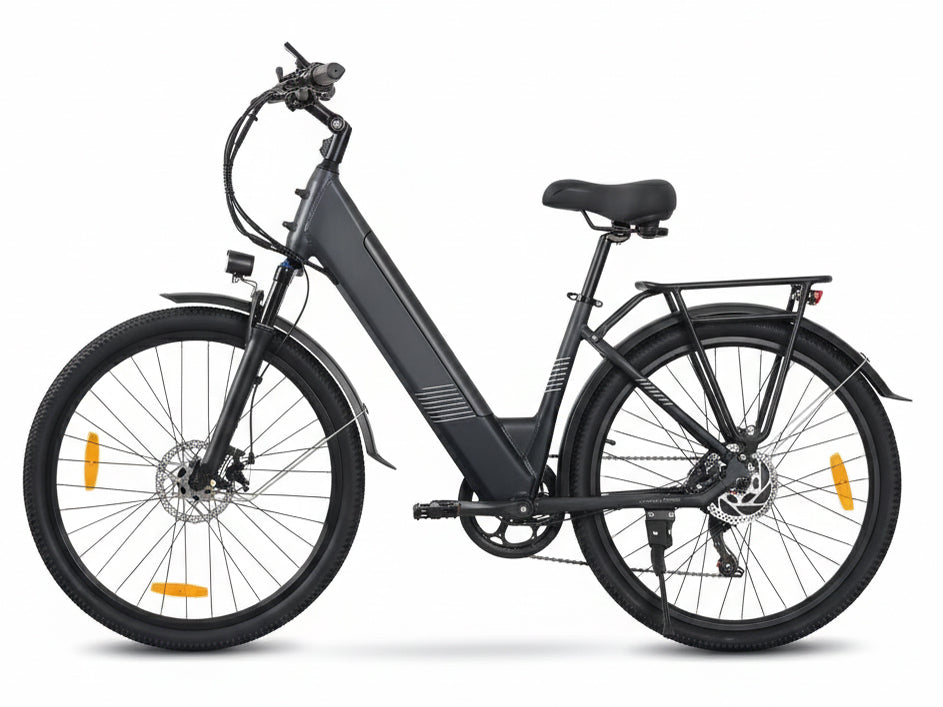フロントとリアの両方に機械式ディスクブレーキを備えており、一般のVブレーキに比べて雨や悪路に強く、軽い力で強力な制動力を発揮します。