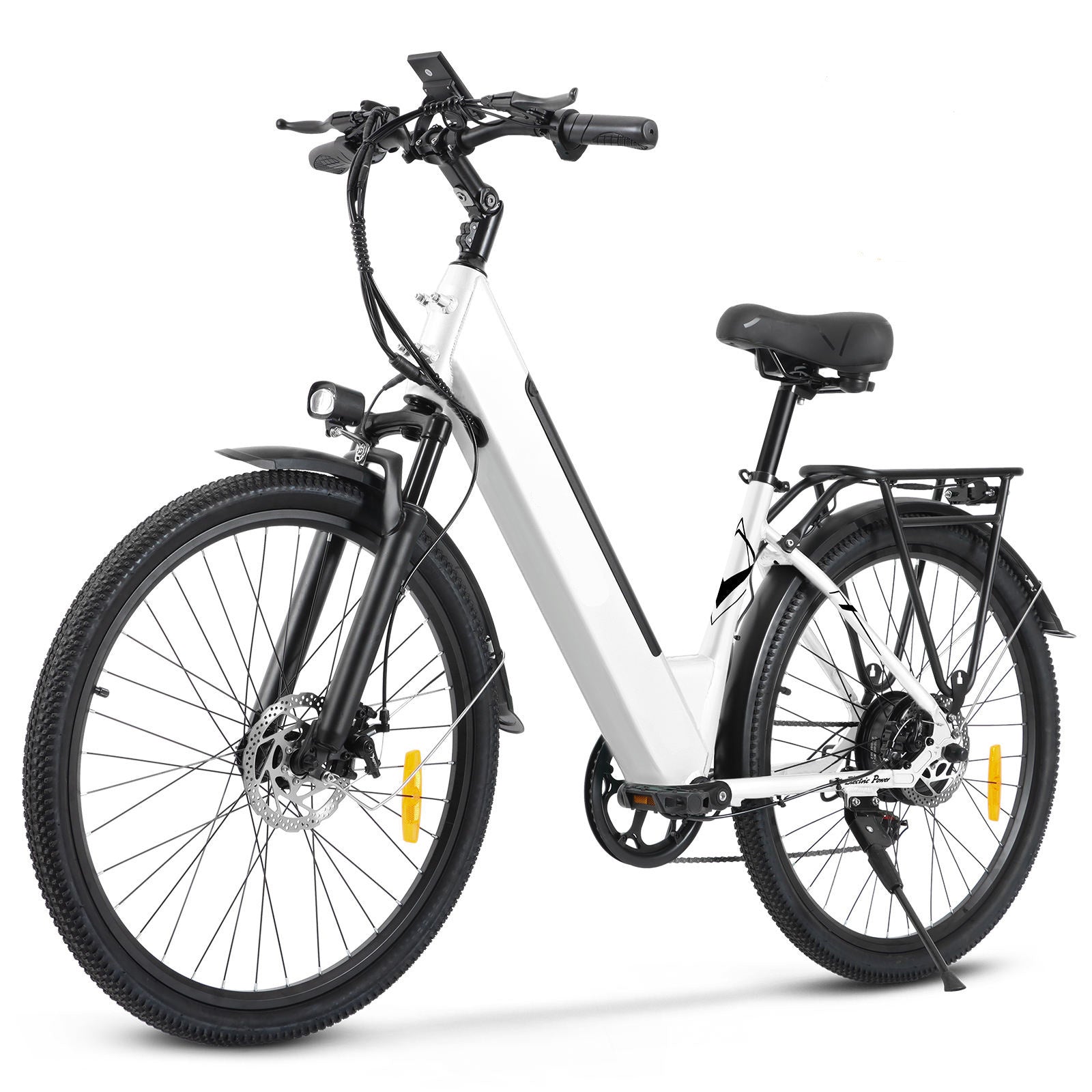 高輝度LEDヘッドライトが暗い道路や悪天候でも進行方向をしっかり照らし、夜間や早朝の通勤・通学も安心。バッテリー直結のため、電池交換の手間も不要です。