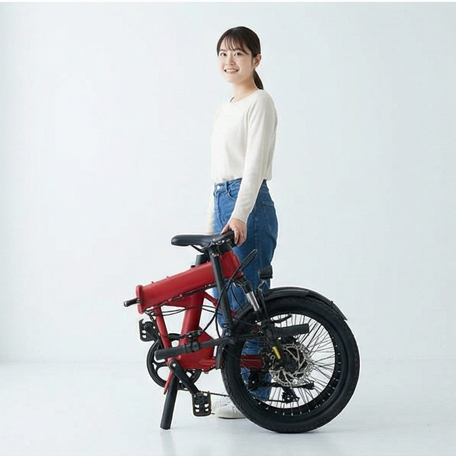 フレームとフォークは、アルミニウム6061で作られているめた、20インチサイズでありながら重量は17.6kgと軽量で持ち運びが楽です。また、体重 100kgのサイクリストでも乗るのに十分な強度を備えています。折りたたみもワンタッチで保管や持ち運びが簡単です。