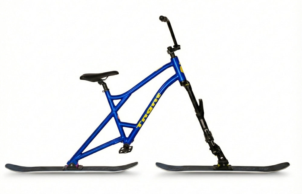 スキーバイクとは、マウンテンバイクをベースにしたフレームの前後に専用のスキー板をとりつけた乗り物です。両手でハンドルを握ってバランスを取り、体を支えられるため、スキーやスノーボードに比べて操作しやすく、自転車に乗れる人なら、短時間で乗れるようになります。また、サスペンションが取り付けられ、凹凸のある斜面でもショックを吸収して滑走することができます。脚力もそれほど必要ないため、長時間滑走しても疲労しにくいという特長があります。また、足が固定されず自由なので、スキーやスノーボードのように足と板を固定することによる捻挫や骨折などの心配がないのもメリットのひとつです。